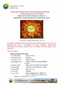 Le groupe du Renouveau charismatique a été créé conformément à la volonté des prêtres et de l’équipe d’animation paroissiale pour répondre au souhait exprimé par certains paroissiens.